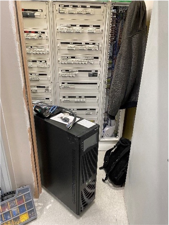 - Mise en place d’un onduleur dans le local TGBT avec pose d’un by-pass externe et de son boitier d’alarmes déporté.
